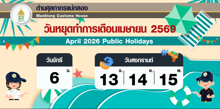 วันที่ 24 กุมภาพันธ์ 2569 เวลา13.00 น. นางสาวสุกัญญา เวทยนุกูล นายด่านศุลกากรแม่กลอง มอบหมายให้ นางสาวสรัลพร จันทร์สกุล นักวิชาการศุลกากรชำนาญการ พร้อมด้วยเจ้าหน้าที่ในสังกัด...